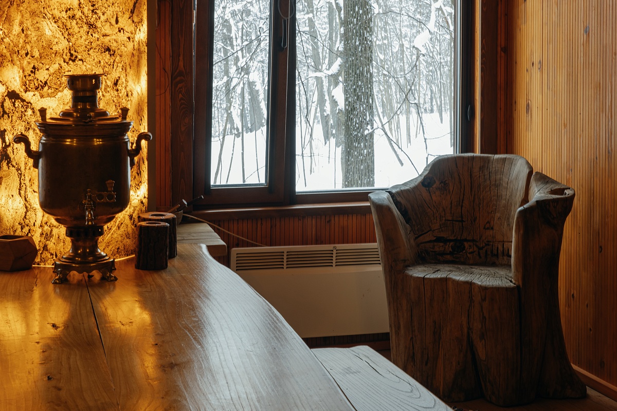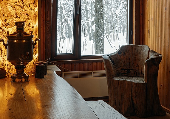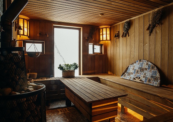 - Первый заход в парную: ритуал первого пара, безконтактное и малоконтактное воздействие, укутывание паром. Теплый душ, отдых с чаепитием.