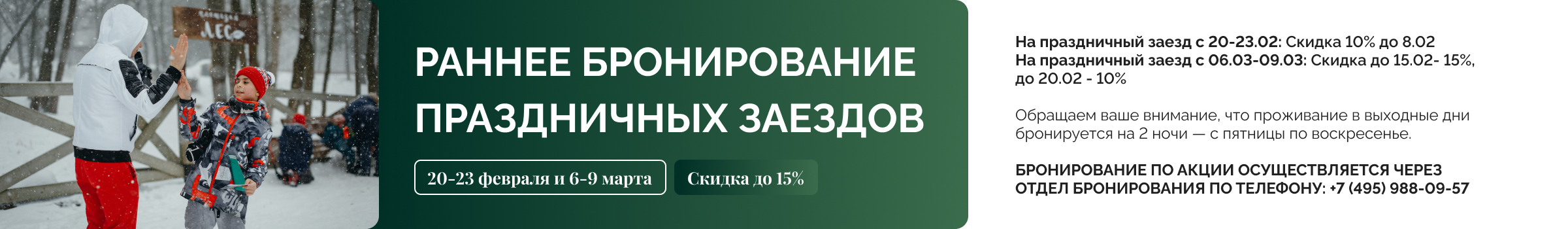 Бронирование по акции осуществляется только по телефону +7 (495) 988-09-57 или по почте info@welna.ru