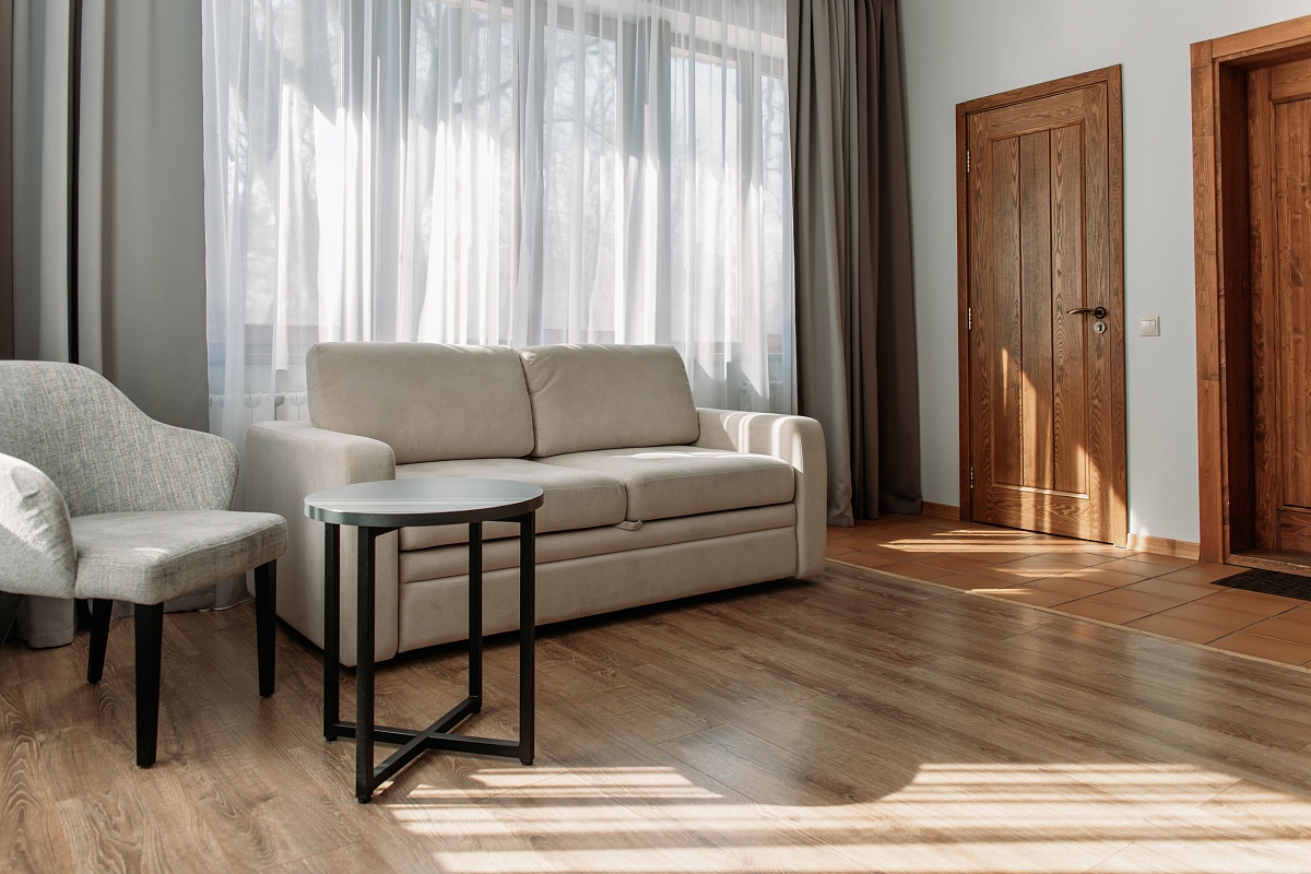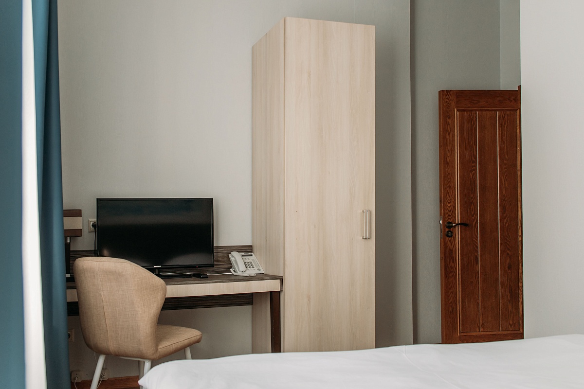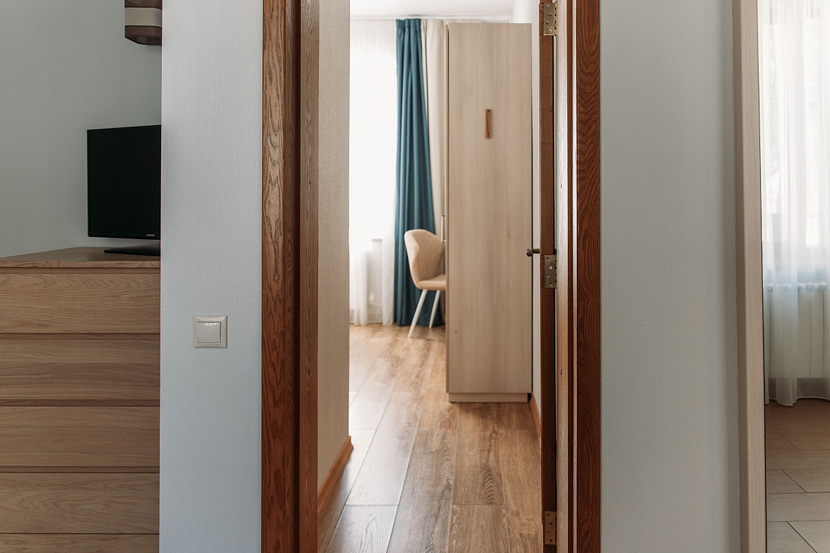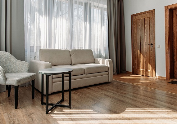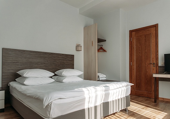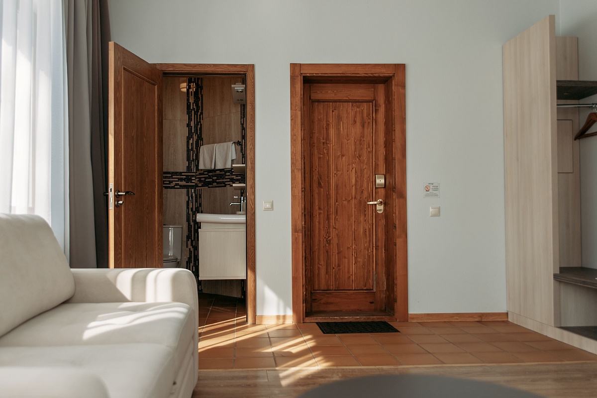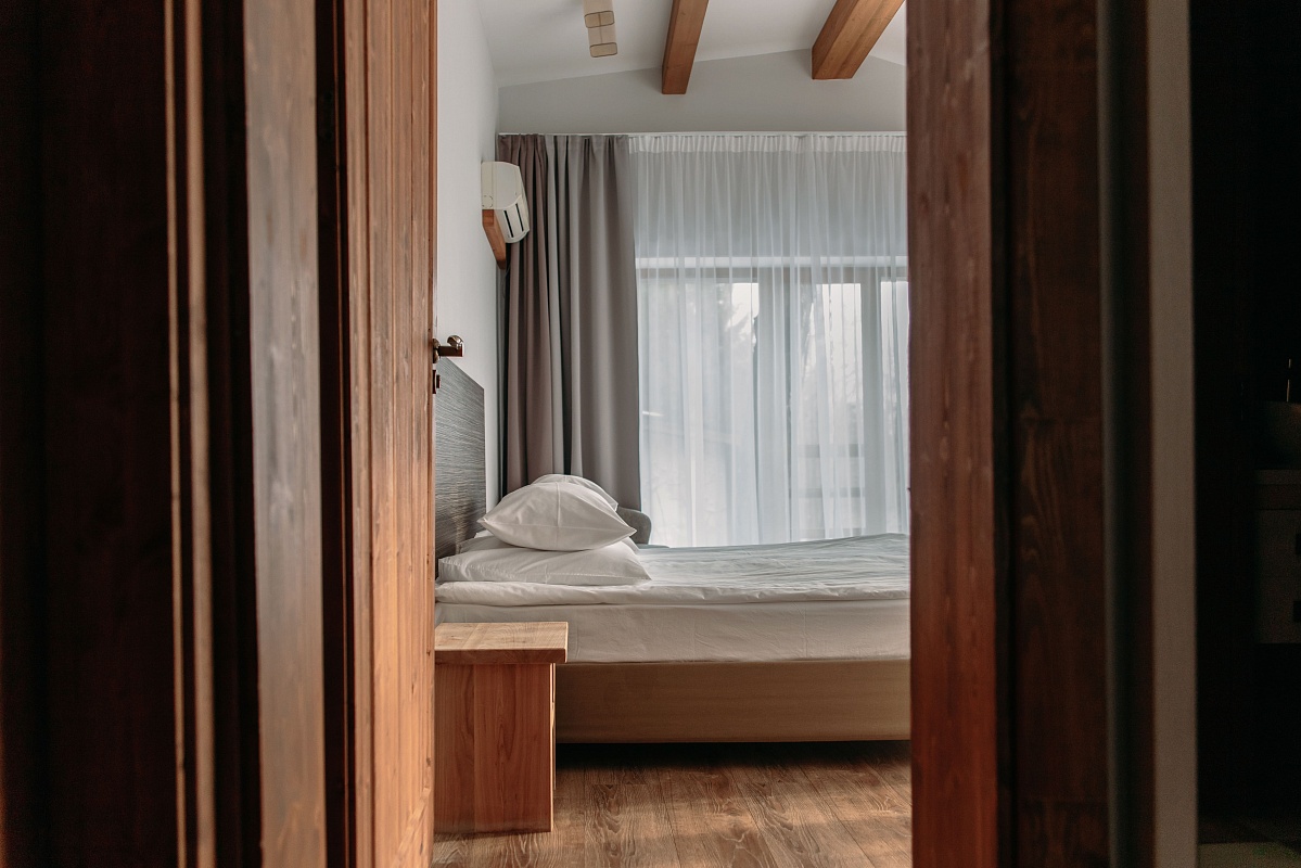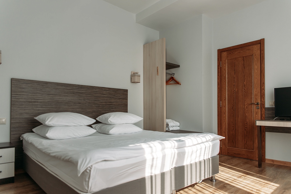 Просторный и комфортный номер — отсюда открывается прекрасный вид на территорию отеля. В каждом номере есть гостиная-столовая с диваном, спальня с большой и удобной кроватью, а также мини-кухня. Оформление интерьера может отличаться от фотографий сайта!