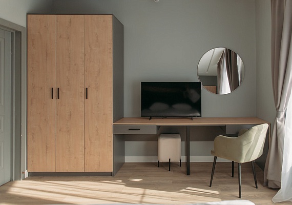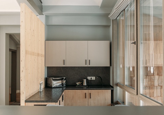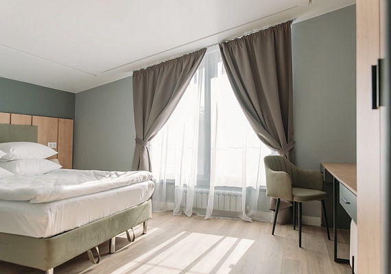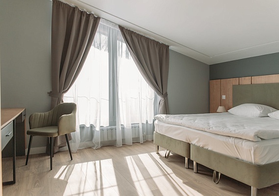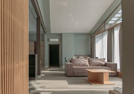Новый номер, введён в эксплуатацию в 2025 году. Стильный и современный номер расположен в 23 корпусе. Имеет большую гостиную комнату с кухонной зоной без плиты и с выходом на просторную веранду, две спальни с индивидуальными санузлами и две гостевых комнаты.