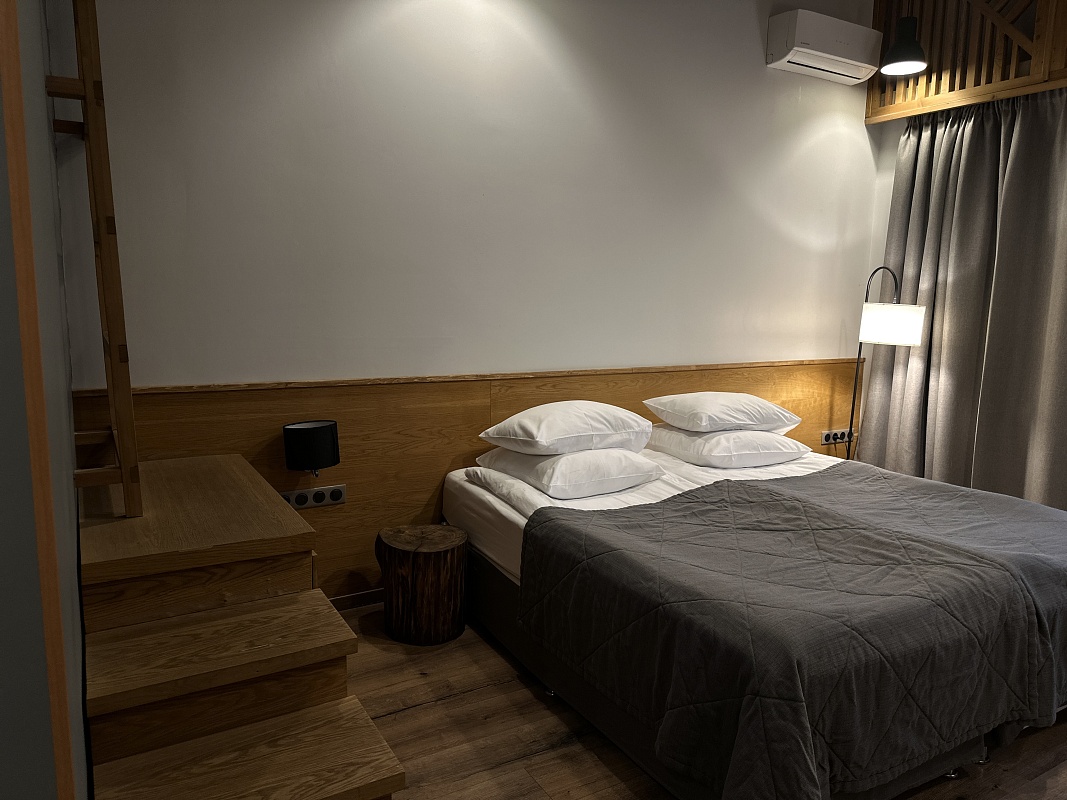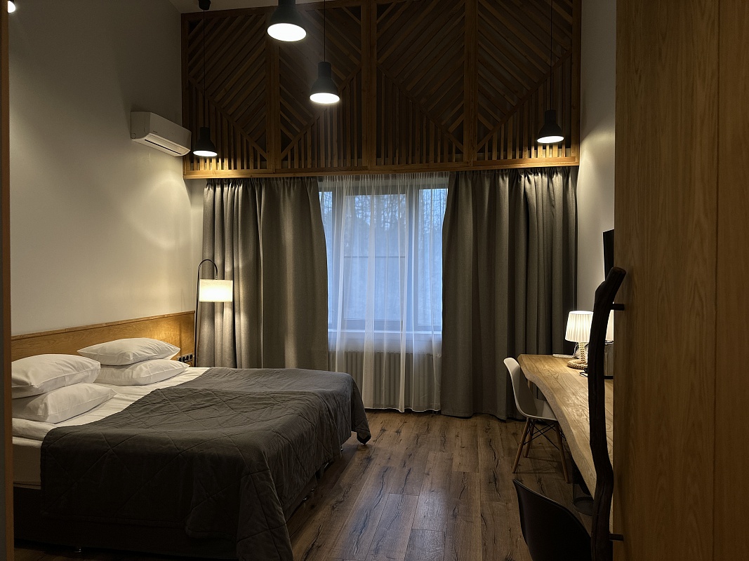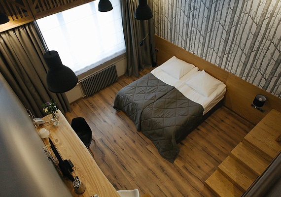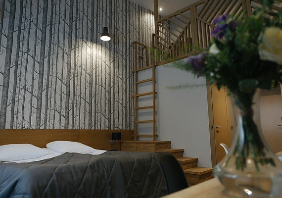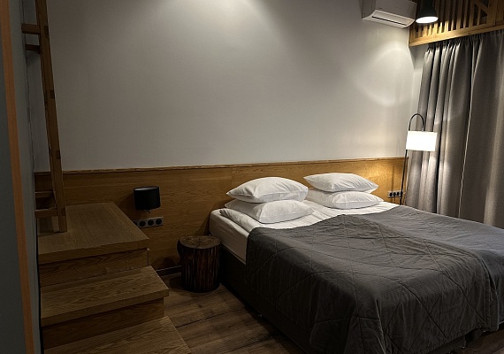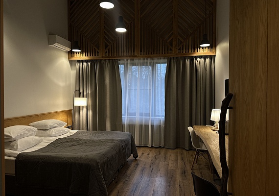 Однокомнатный номер в приглушенных тонах с большими окнами и видом на парковую территорию отеля. Интересные сочетания цветов, натуральные материалы и милые детали создают особенный уют. Номера, расположенные на втором этаже, порадуют гостей высокими потолками и мансардной спальней. Оформление интерьера может отличаться от фотографий сайта!
