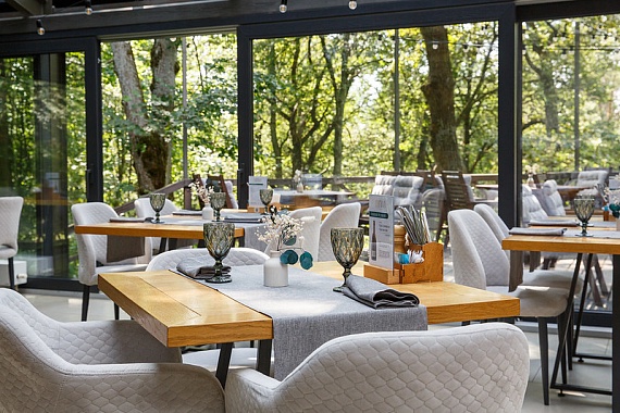 Флагманский ресторан с авторской кухней. Уютная атмосфера, большая винная карта и открытая веранда с панорамным видом на лес. Забронировать стол можно по телефону: +7 (930) 848-00-45 или 0336.