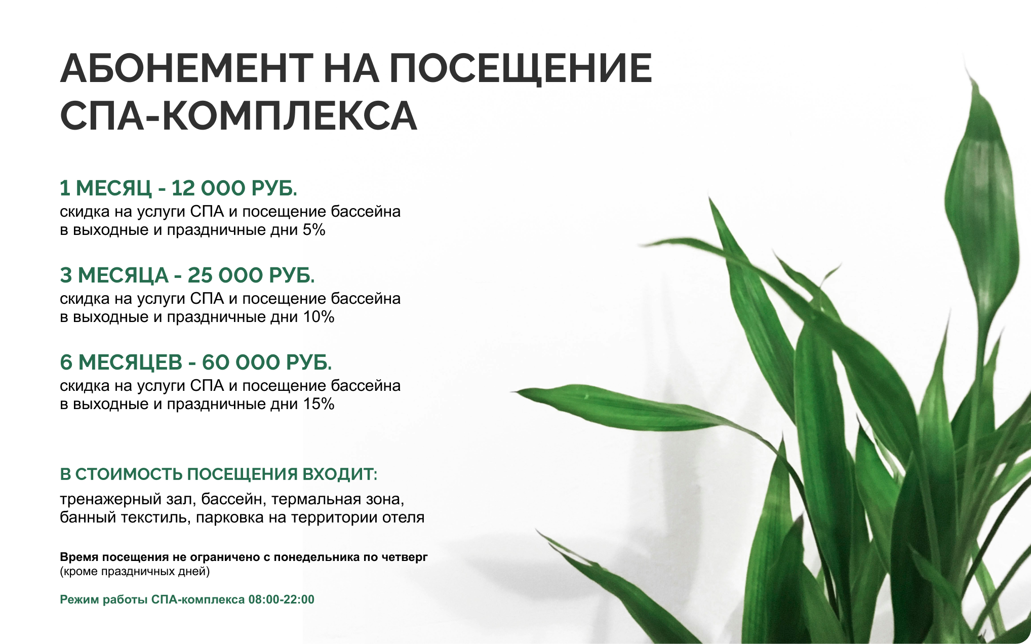 Для того, чтобы посетить территорию СПА-комплекса необходимо приобрести дневную карту гостя или открыть постоянный счет у администратора на главном ресепшен нашего отеля, который находится при въезде у КПП